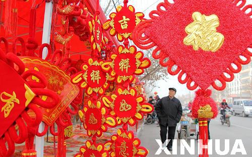 新華網山東頻道1月22日電 龍年新春臨近,全國各地紅燈高掛,對聯、福貼等春節飾品熱銷,人們在紅紅火火的氣氛中喜迎農歷新年的到來。