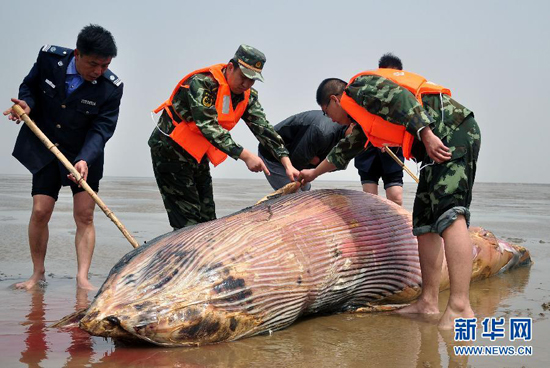 萊州灣發(fā)現(xiàn)一頭死亡鯨魚(yú) 死因不明 2012-04-29 08:08