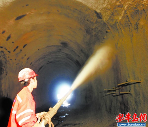 記者在現場看到,需要從膠濟鐵路線下穿過的主隧道已經順利貫通,幾名施工人員正在對隧道壁表面澆筑混凝土,完善隧道的二次襯砌。“正在施工的正上方,就是膠濟鐵路線。”梁成學介紹,隧道的拱頂距膠濟鐵路路軌約9.9米,而該段巖石有屬于容易破碎坍塌的中風化花崗巖層,給施工進度帶來了很大的阻力。需要下穿膠濟鐵路的隧道段長約115米,“從施工開始到貫通用了近9個月的時間”。