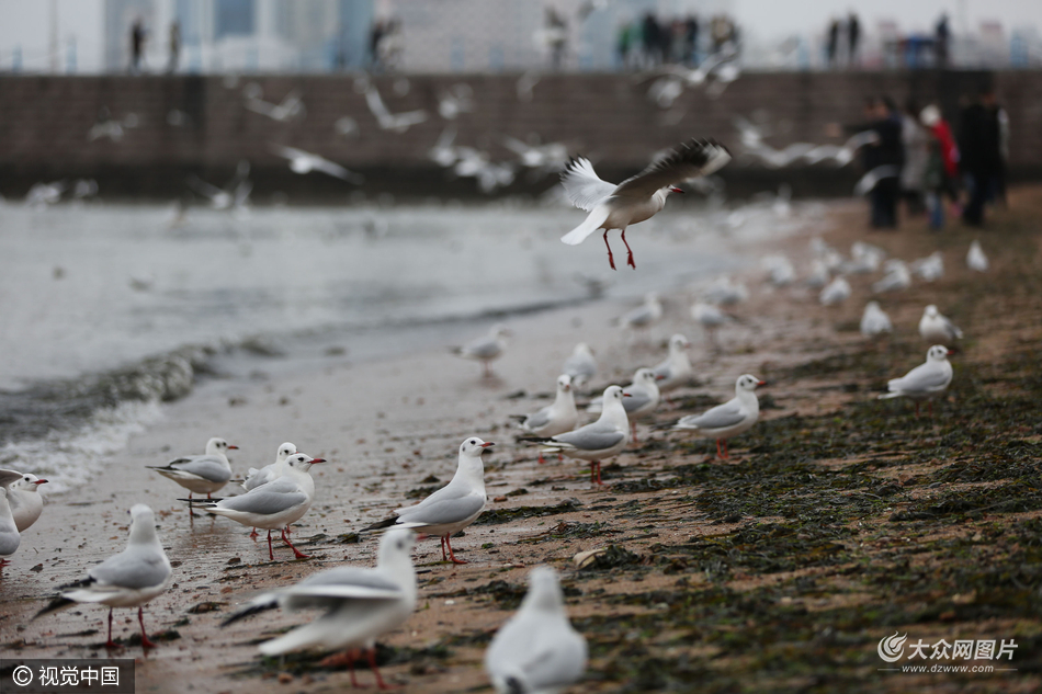 2017年01月08日,青島,紅嘴鷗在棧橋景區賣萌乞食。圖片作者:黃杰顯/視覺中國