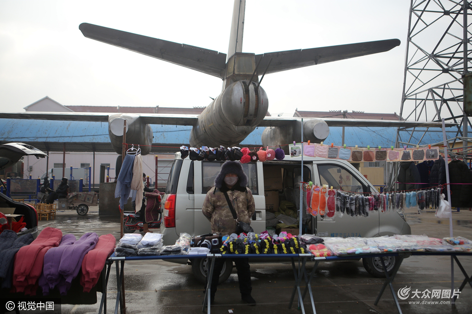 2017年1月9日,山東省濱州市,博興一農(nóng)村再現(xiàn)“奇葩”大集,村民們?cè)趦杉芫o靠著的巨大的退役轟五轟炸機(jī)下趕集做買賣,現(xiàn)場十分熱鬧。據(jù)悉,這兩架轟炸機(jī)是村里十多年前通過武裝部聯(lián)系部隊(duì)購買的退役報(bào)廢飛機(jī),機(jī)上所有的武器和航電設(shè)備均被所屬部隊(duì)拆下,只剩空殼。如今這兩架被固定在村里廣場上,并設(shè)置了專門的軍事知識(shí)宣傳欄對(duì)村民進(jìn)行國防教育。圖片作者:高立萌/視覺中國