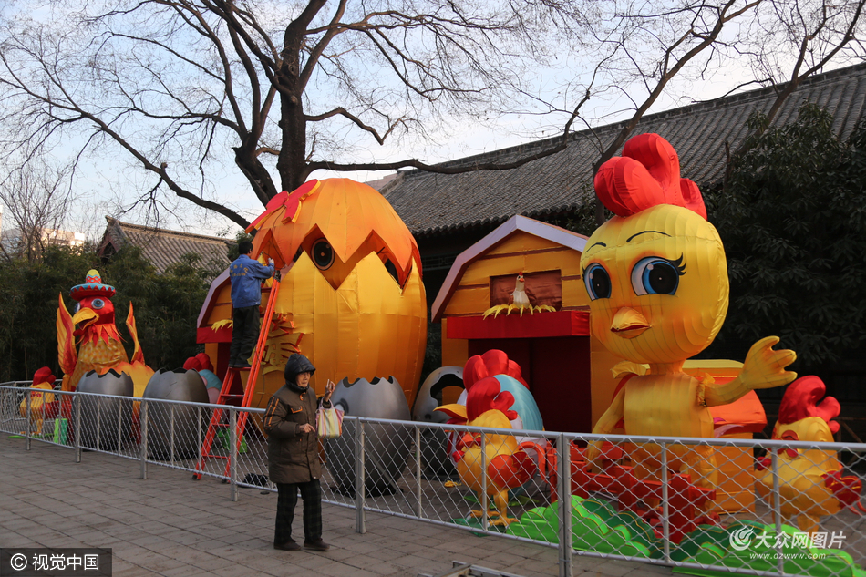 2017年1月14日,濟南趵突泉公園,第38屆趵突泉迎春花燈安裝幾近尾聲,今年以雞的造型唱“主角”,形態各異的雞年造型吸引眾多游客的眼球。據了解,第38屆趵突泉迎春花燈會將于1月28日(農歷大年初一)在趵突泉公園舉行,如今距離這一天越來越近。