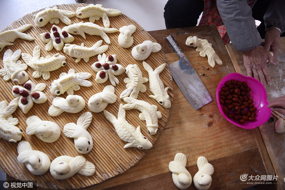 花饃花樣有棗山面饃、12生肖面饃和各種魚、鳥、獸等動物面饃,各種面團制作的花饃栩栩如生。