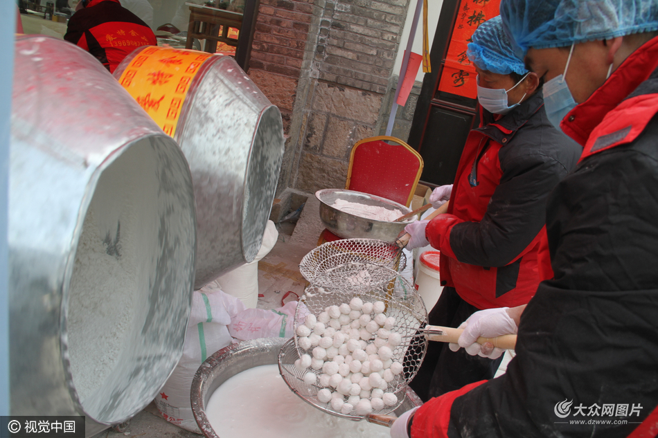 2017年2月6日,在濟南明湖路與百花洲交匯處,街頭現場手工制作元宵走俏,吸引眾多老市民前來購買手工元宵。