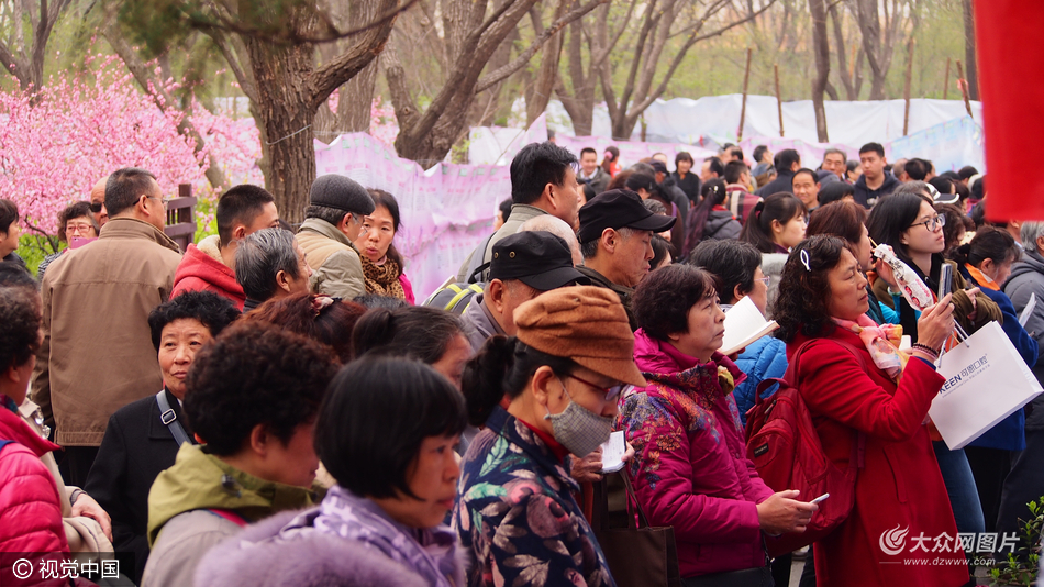 2017年3月30日,濟(jì)南,千佛山相親會(huì)迎來(lái)數(shù)以萬(wàn)計(jì)的游客,因孩子上班老人趕來(lái)為自己的孩子尋找對(duì)象。
