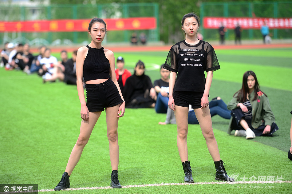 2017年4月20日,山東省濟南市,山東藝術學院舉辦的春季運動會,服裝表演專業的學生將“服裝發布會”融入傳統的運動員入場儀式中,60名大學生身穿各種款式的運動服裝,在田徑場這個大舞臺展示服裝之美和優雅身姿,同時表演女子格斗術和擒拿術,展示女漢子風采。
