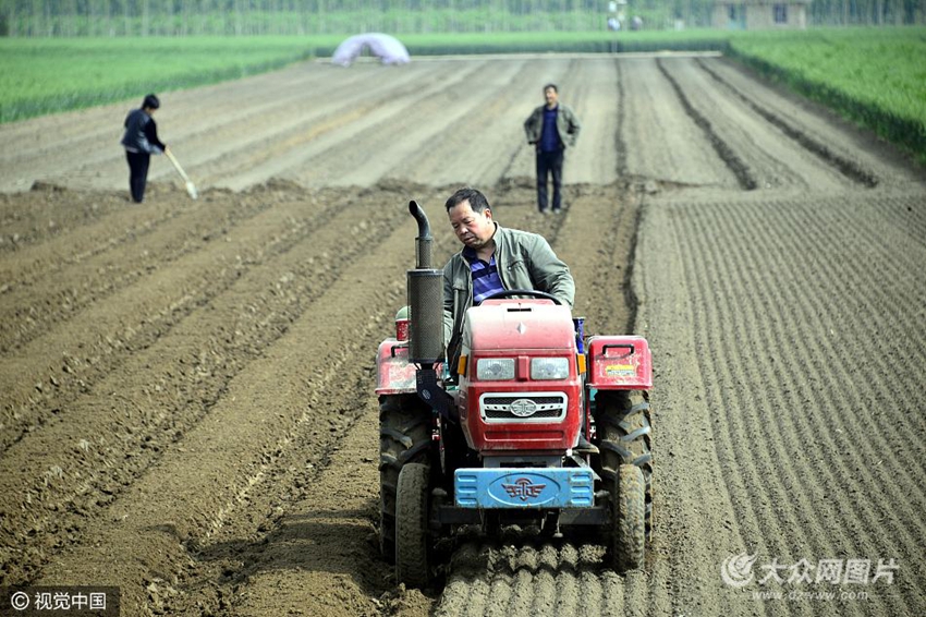 2017年5月4日,山東省聊城市茌平縣肖莊鎮(zhèn)田莊村的村民在田間勞作。立夏節(jié)氣將至,各地農(nóng)民搶抓農(nóng)時,忙著進行田間管護、夏收夏種,農(nóng)事生產(chǎn)進入繁忙時節(jié)。