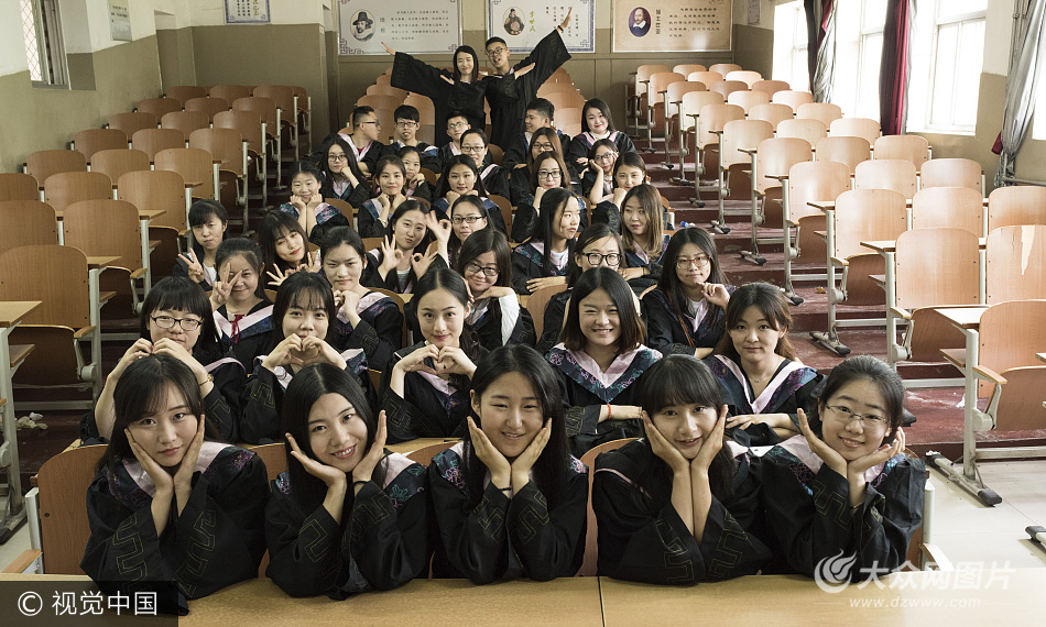 組照說明:2017年5月23日,山東聊城大學文學院2013級漢語言文學專業39人在校園內拍攝畢業照片致青春。
