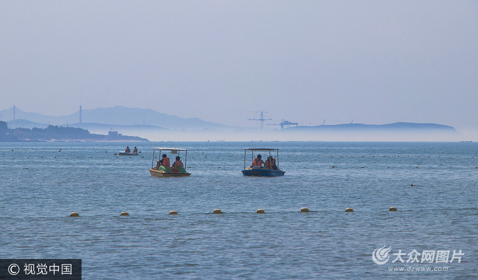 2017年6月14日下午,山東威海市榮成市,那香海景區(qū)海面出現(xiàn)平流霧。隔海望去,霧氣籠罩中的海岸仿佛懸浮在空中一般。