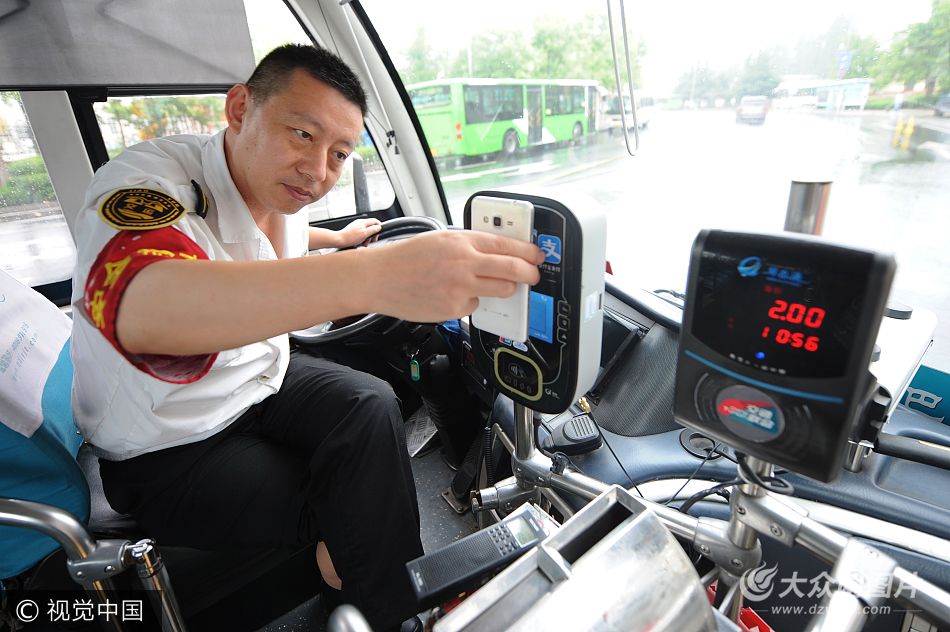 2017年7月2日,山東省青島市,市民只要帶上手機,就可以用多種不同的支付方式支付在市南區運營的交運溫馨巴士31路公交車費,實現了微信、銀聯卡云閃付、蘋果支付、三星支付、華為支付等多種“移動支付”的公交線路。