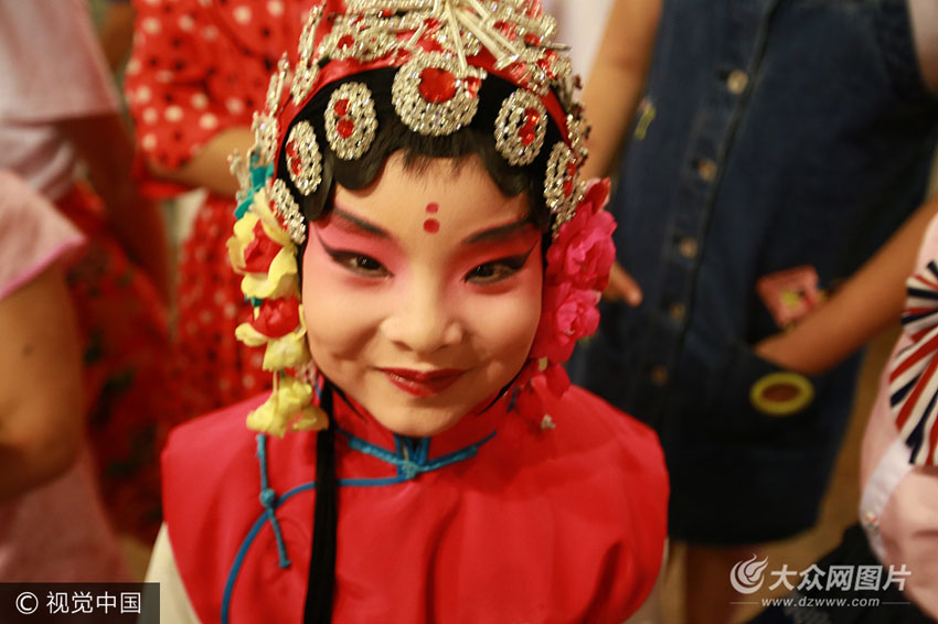 7月6日,濟南,為進一步弘揚傳統文化,普及國粹藝術,在北洋大戲院上演少兒京劇大賽,大賽中最小的只有四歲,小選手臺上精彩表演得到臺下陣陣掌聲。