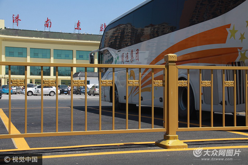 7月10日,“長安金”護欄在濟南火車東站亮相。