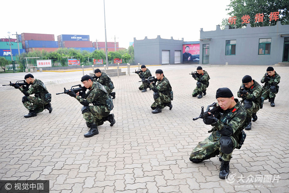 組照說明:2017年7月22日,青島,二十四節氣大暑,迎來一年最炎熱的時節。黃島邊防檢查站監護一中隊的國門衛士們頭頂烈日,在訓練場進行特種戰術訓練。這支有“六鐵中隊”之稱的邊防戰士們冬練三九、夏練三伏,練就一身過硬本領守護祖國的大門。