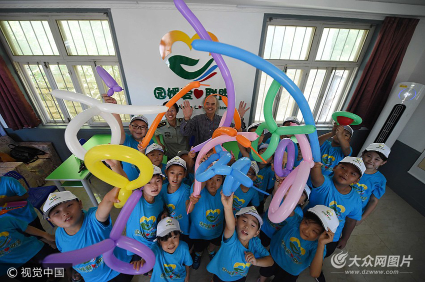 7月24日,煙臺,由煙臺公安邊防支隊為留守兒童舉辦的“園媛愛心聯盟軍事夏令營”活動在煙臺養馬島開訓。