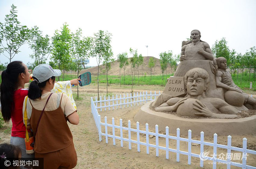 8月10日,山東濱州市黃河沙雕主題公園驚艷亮相,公園占地100余畝,29個巨型沙雕,消耗黃河泥沙近萬噸。一車一車的黃河泥沙經過運輸、壓制、雕刻、涂膠等多項步驟,變身成眼前宏偉逼真的金字塔、自由女神像、雙子塔等著名建筑,蜘蛛俠、阿凡達、美人魚、米老鼠等卡通形象也一一亮相,吸引了眾多市民前來參觀。