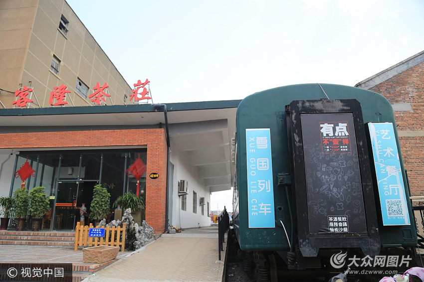 8月22日,濟(jì)南,張莊一茶葉市場里有一列退役的綠皮火車,經(jīng)過改造后變身快餐廳,快餐廳里布局合理有序。