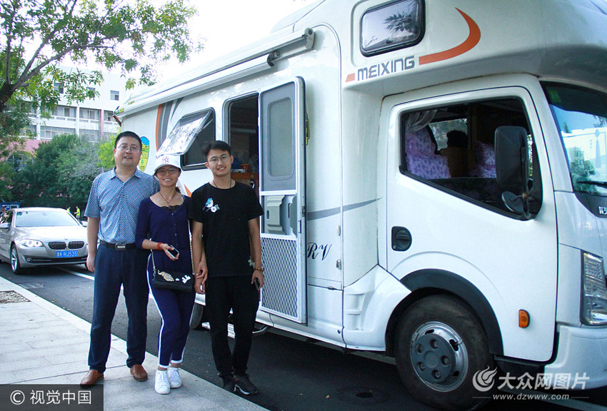9月8日,威海,當(dāng)天是山東大學(xué)(威海)大一新生入學(xué)報(bào)到的第一天,校園內(nèi)外隨處可見(jiàn)陪著孩子報(bào)到的家長(zhǎng)和親友。其中一名來(lái)自遼寧大連的新生顯得格外惹眼,不僅前來(lái)送行的“親屬團(tuán)”隊(duì)伍足夠龐大,而且他和8位親戚還是乘坐著一輛房車(chē)來(lái)的。