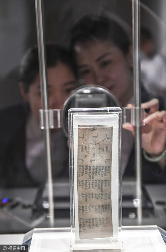 民眾用放大鏡觀賞“帛書”。
