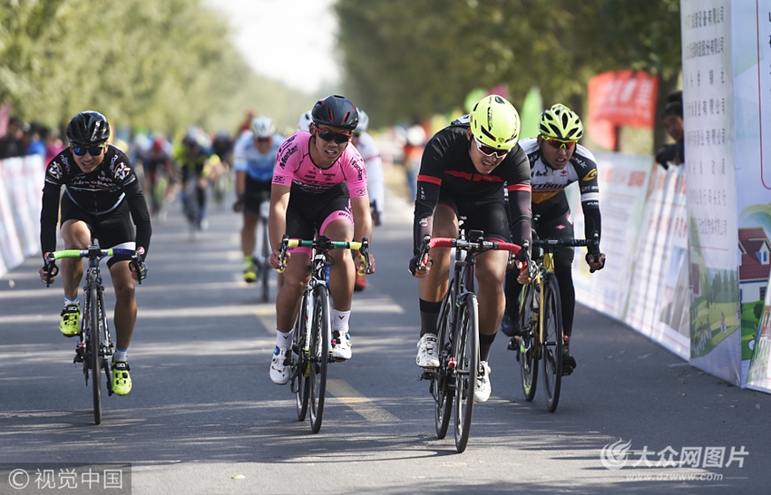 2017年10月31日,山東濱州,2017中國?濱州首屆“沿著黃河去碼頭”全國自行車精英賽賽況。