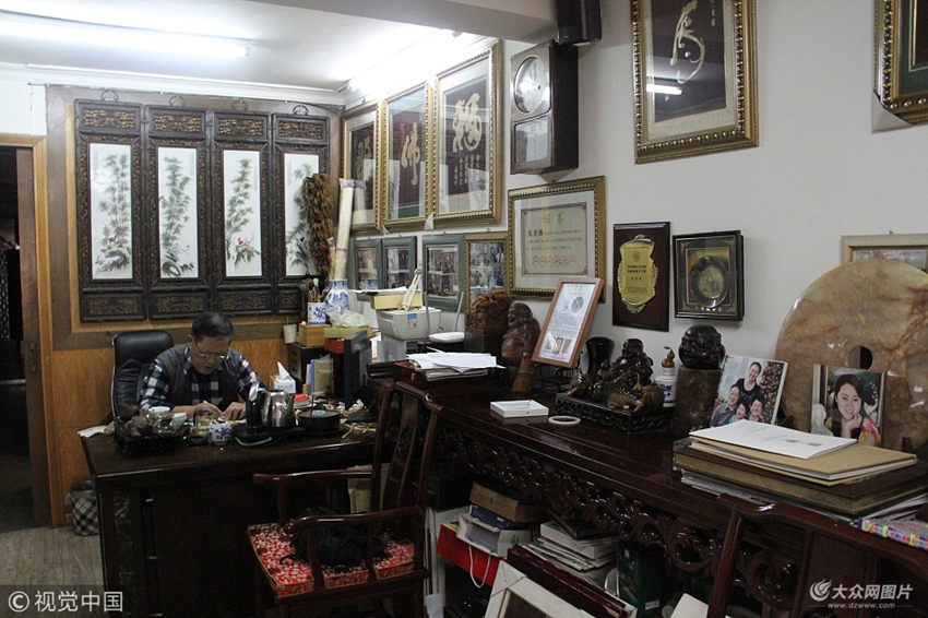 2017年11月14日,在山東濟南歷下區明湖小區社區內,67歲的張崇勝老人能用麥秸刻字作畫,自打開始堅持了40年余年時間。