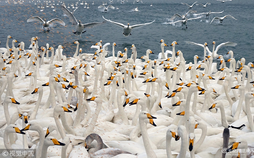 威海:近萬只天鵝越冬榮成 吸引大批游客 (/7)