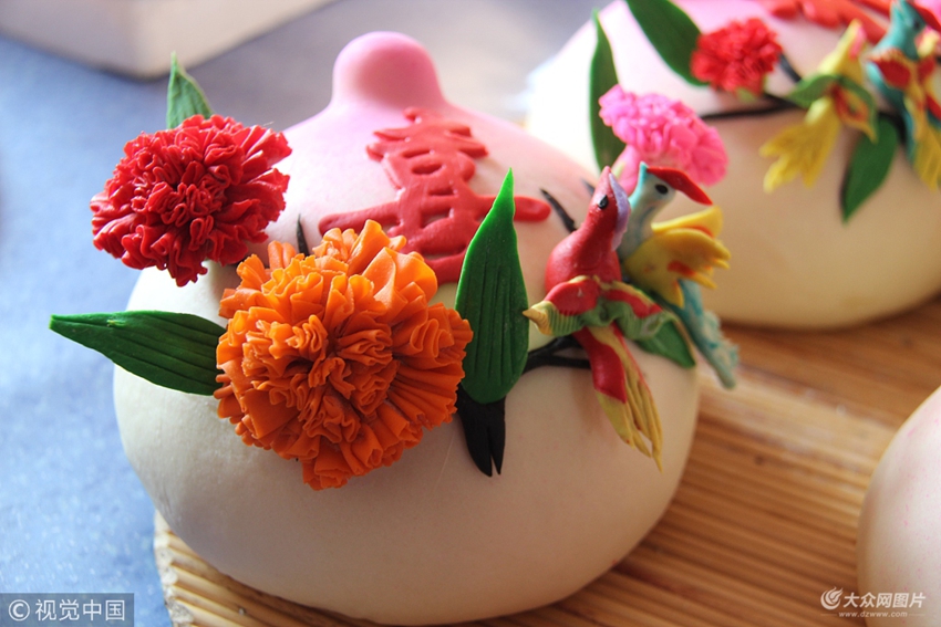 2018年1月24日,山東煙臺,萊陽沐浴店鎮北赤山村的呂愛玲,今年48歲,從小就跟隨母親學習做各種喜餑餑,到了二十多歲成立家庭后,呂愛玲便在自己家做花喜餑餑,一做就是20多年。