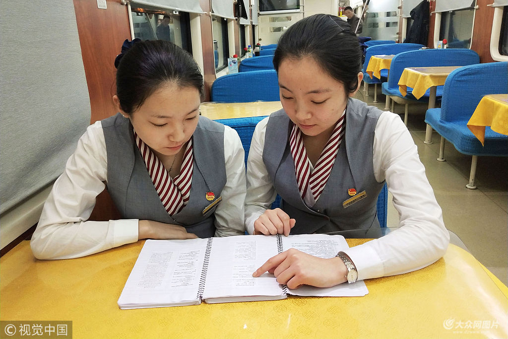 2018年2月10日,青島客運段西寧四組青島至西寧的Z272/3次列車上有一對孿生姐妹花乘務員,姐姐叫董冰,妹妹叫董雪,姐妹倆在工作崗位上已經兩年了,生活中形影不離,工作中也是配合默契,旅客總是覺得她一直在工作,其實是對雙胞胎。姐姐安靜內向,工作認真,一絲不茍,妹妹活潑可愛,工作起來雷厲風行,在工作中姐妹倆性格上的互補得到了好評,每次走到她們的車廂總是干干凈凈,給人心情愉悅的感覺。這是姐妹倆第二次迎戰春運,姐妹倆互相整理下彼此著裝,打開車門迎接旅客上車,在車廂里董冰為旅客換發票卡,并囑咐旅客安全注意事項。在硬座工作的時候姐妹兩還經常比賽整理行李架,你整一邊,我整另一邊,看誰整得標準高。夜間運行,姐妹倆交接班時,姐姐總是暖心的為妹妹接了一杯水,細心的交接著重點旅客、將要下車的旅客人數以及車廂衛生,妹妹董雪暖心的說了句:“姐,辛苦了!币归g工作不能打擾旅客,董雪先巡視車廂,輕手輕腳的整理小桌上的物品,接來一桶水擦拭著洗臉間,為第二天起床的旅客洗漱做準備。平時交班在餐車時姐妹倆也會討論業務知識,把學習的氛圍帶給大家。