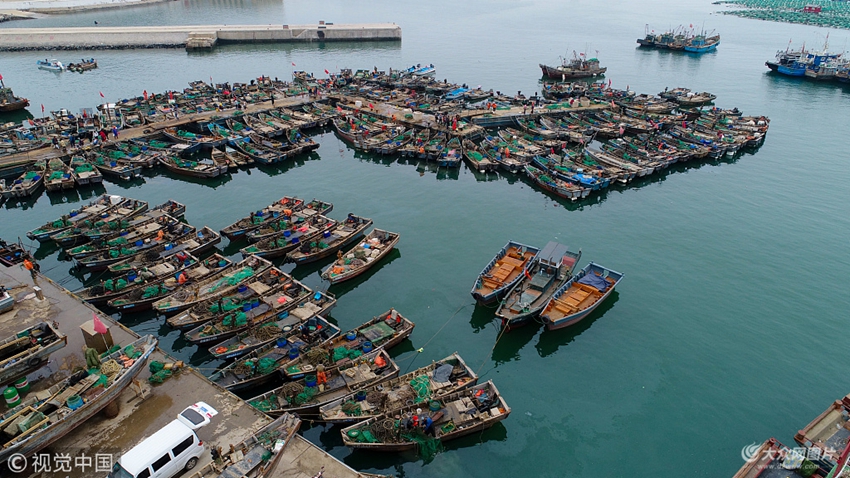 2018年5月1日,漁船停泊在煙臺市芝罘島東口漁港內(nèi)。