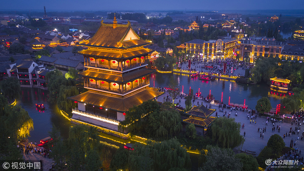 2018年4月29日晚,航拍的山東臺兒莊古城夜景美如畫。圖片作者:高啟民 /視覺中國
