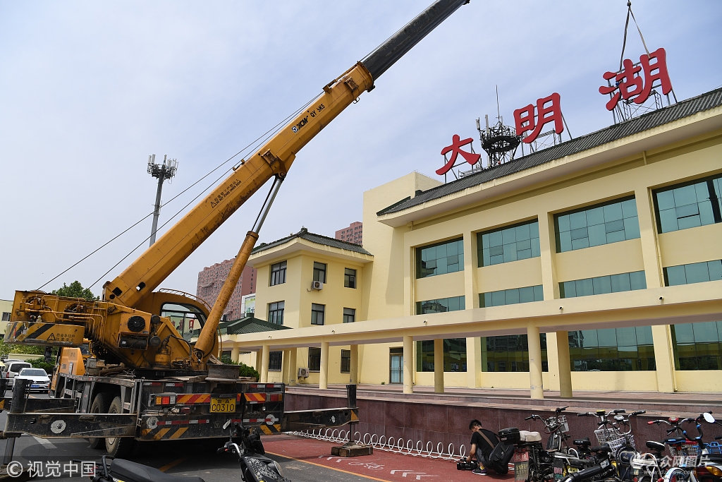 2018年5月29日,濟南新建高鐵站將取名“濟南東站”,原東站更名“大明湖站”,新站標正在安裝中,新的大明湖站芳容初現。