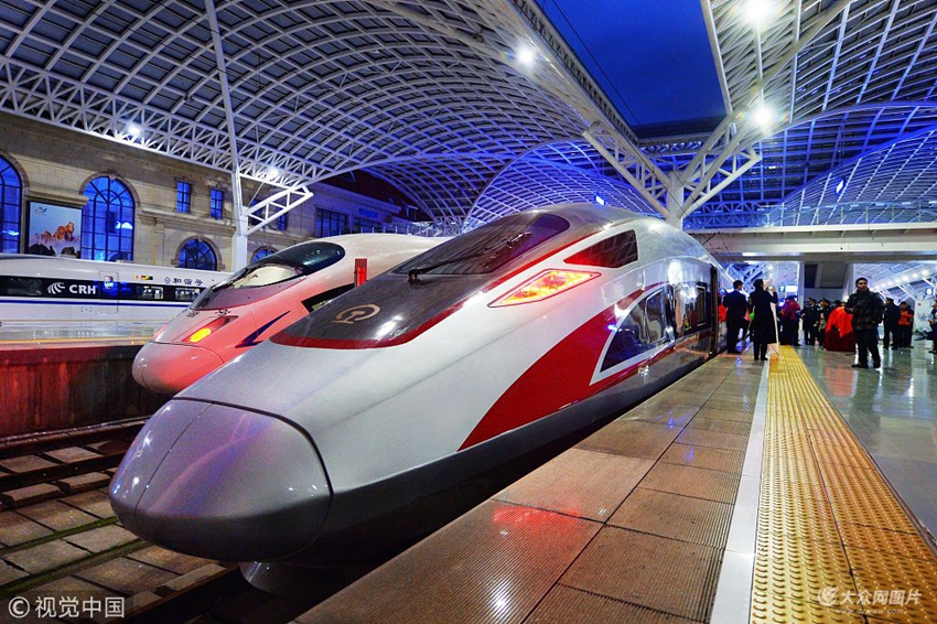 2018年12月5日,“復(fù)興號(hào)”動(dòng)車(chē)組在青島站準(zhǔn)備出發(fā)。