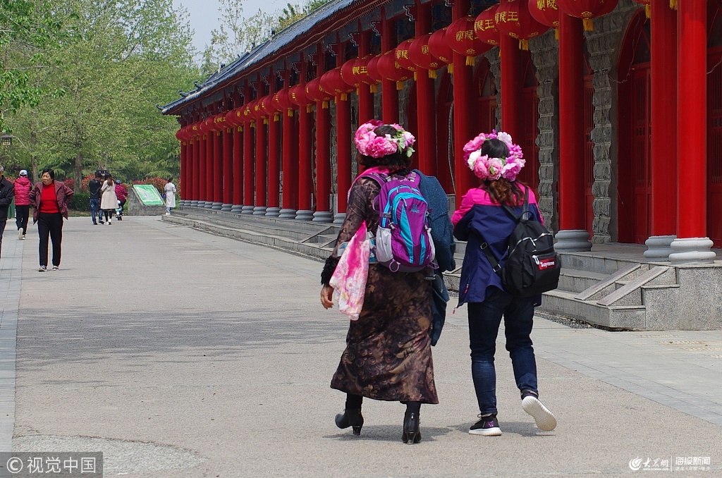 2019年4月10日,山東省菏澤市曹州牡丹園,人們在游園賞牡丹。