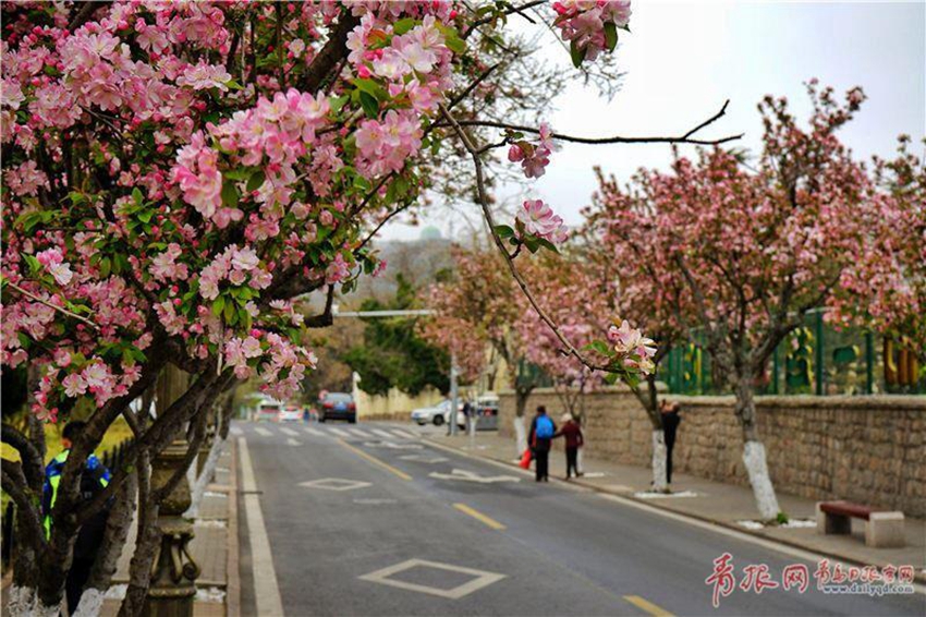 近日,青島八大關碧桃、海棠花相繼綻放,引來市民、游客前來觀賞。