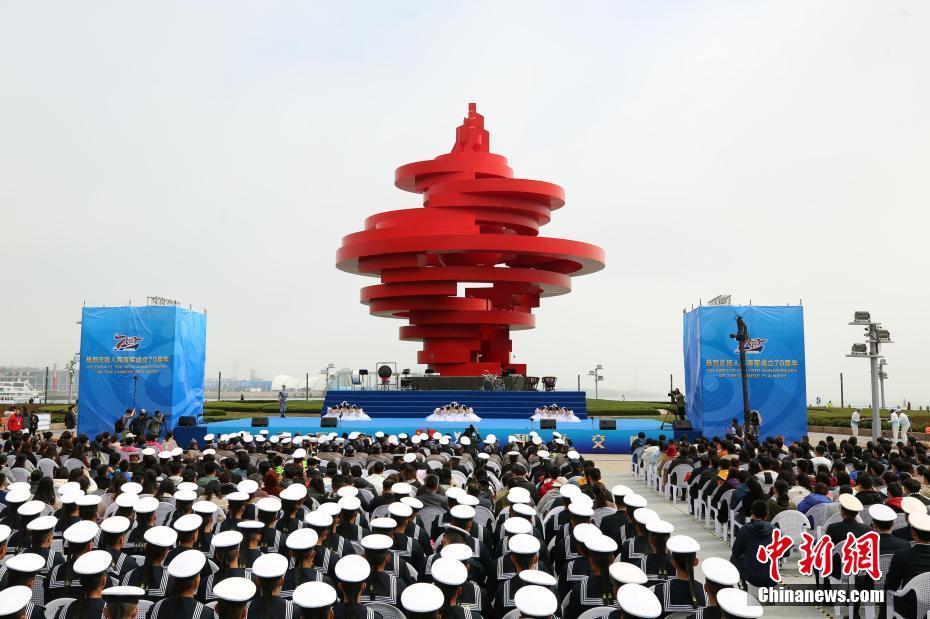 4月22日,慶祝中國海軍成立70周年中外海軍聯(lián)合軍樂展示在青島五四廣場舉行。此次軍樂展示以“大海樂章·和平交響”為主題,分為“和平之海”“和平之師”“和平之歌”3個篇章。聯(lián)合軍樂展示在歌舞《人民海軍向前進》中拉開序幕。胡耀杰 攝