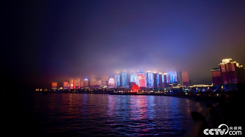 人民海軍成立70周年主題燈光秀點亮青島 (/6)