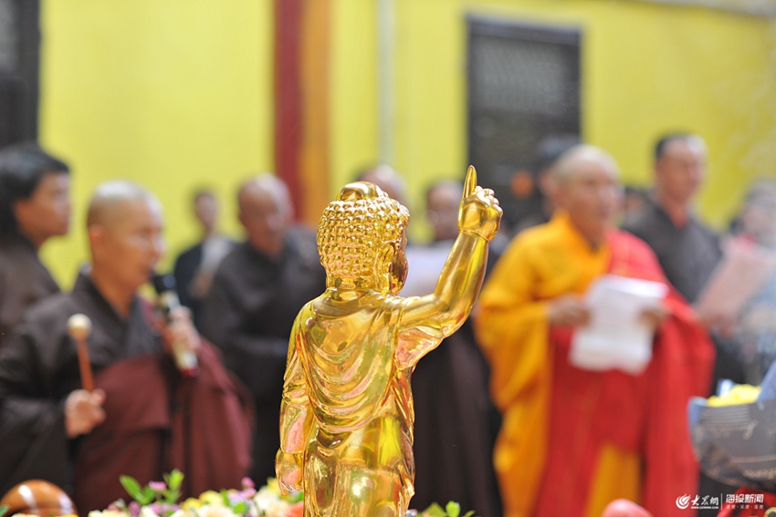 2019年5月12日,山東濟寧,鄒城晚照寺舉辦浴佛節法會,眾多市民參與誦經、撞鐘、放生的活動。