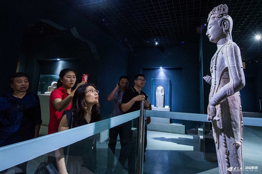 2019年5月16日,山東濰坊,觀眾在青州市博物館內參觀藏品,感受歷史的魅力,迎接5月18日國際博物館日的到來。