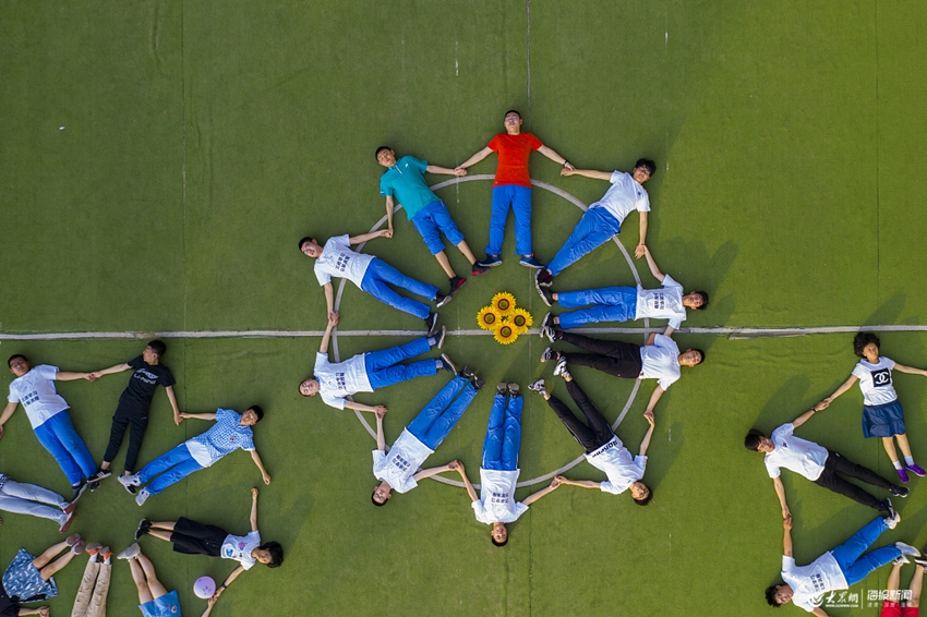 2019年6月4日,濟南,第二十中學即將畢業的中學生用各種造型拍攝畢業照,喜迎畢業季。同時距離中考6天倒計時,用創意畢業照的形式緩解中考壓力,告別三年初中好時光。