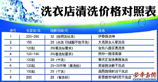 干洗市場的價格究竟隨意到什么程度,近日記者走訪了市內的8家干洗店,對短款羽絨服及長款皮衣的價格進行了調查,發現同一款皮衣的最高要價竟然是最低要價的兩倍,而短款羽絨服的價格差也達到了12元。