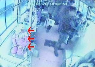 劉漢格20日在公交車上的監控畫面。 本報記者 杜洪雷 攝