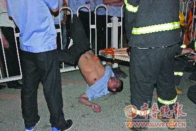 本報濟寧5月19日訊 (記者 陳鴻儒 通訊員 裴敦金) 18日晚,濟寧市城區共青團路與紅星路交叉口附近,一醉漢翻越馬路中間護欄時,膝蓋被護欄卡住,頭朝下倒掛在護欄上,掙扎了許久也沒能掙脫。附近路人撥打119電話報警,濟寧市中區消防大隊趕到現場后,才將其解救出來。 5月18日晚上10時40分許,濟寧市中區消防大隊接到報警,該市城區共青團路與紅星路交叉口處,一名行人在翻越馬路中間護欄時,不慎膝蓋被欄桿卡住無法動彈,請求救援。市中區消防接警后出動一部搶險救援車,7名消防官兵趕赴現場。 消防官兵趕到現場一看,一中年男子滿身酒氣,衣衫不整,右腿膝蓋部位卡在兩根護欄之間,頭朝下倒掛,由于大量飲酒,該男子意識已經非常模糊。現場有大量市民圍觀,110特勤隊民警在現場維持秩序,120急救車停在一旁,由于醉酒男子的右膝被卡得太緊,急救人員也束手無策。 消防官兵到場后,立即使用液壓擴張器對卡住醉酒男子右膝的護欄進行擴張,而剛一擴張,醉酒男子就由于疼痛難忍突然大叫,經過消防官兵近10分鐘的努力,終于將其救出,隨后120急救人員用擔架將醉酒男子抬上急救車,送往醫院救治。 消防官兵及民警正在現場救援。本報記者 陳鴻儒 攝 |