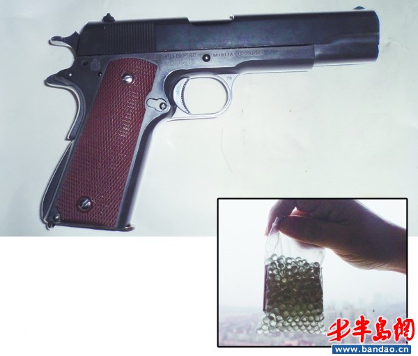 [提要] 王先生買來的仿真手槍。為了協(xié)助警方抓住仿真槍販子,家住齊東路的王先生自掏腰包,買來仿真槍幫忙取證。王先生說,10月中旬警方的鑒定結(jié)果出來了,他所購買的第一支仿真槍的確具有殺傷力,屬法律嚴禁販賣之列。