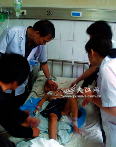 “看表演之前,誰會想到老虎會沖出表演場地傷人?”13日上午,德興市人民醫院內,剛剛清洗完傷口的德興市銀城鎮唐保國趴在病床上,一臉痛苦的表情。相鄰的病床旁,他的女兒張美枝正在注射狂犬病疫苗。