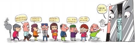 “每天上午9點上班前,電梯門口總是排起長隊。一般要等5-10分鐘才能乘上電梯,人多時要等10多分鐘”