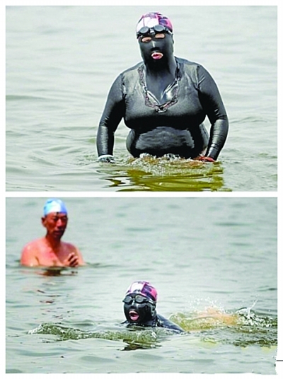 昨天在微博上,一張圖片流傳甚廣,穿著暴強泳衣的青島大媽以肥碩的身材和別出心裁的泳裝征服許多人。只見圖片上這套泳衣全身烏黑,附帶類似“強盜面具”的頭罩和泳帽,只露出兩只眼睛和嘴巴,乍一看,仿佛這個游泳的大媽身上沾滿的是石油。