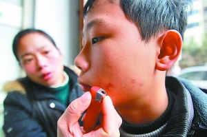 [提要] 12月12日下午2點,合川涼亭中學初二男生劉嘉和劉小軍幾名同學,呆在操場一角,神情沮喪。劉嘉的左臉被燙傷留下疤痕,西南醫院燒傷科醫生診斷稱康復需要很長時間。原來,11月23日晚上9點多睡覺前,睡在上鋪的同學秦秀川、高峰和劉家藝在吹牛,睡下鋪的劉嘉接嘴,說了句帶“雜種”二字的話。
