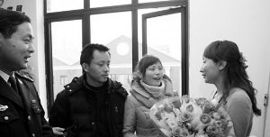 陪同前來的民警也送上了鮮花和見義勇為慰問金。