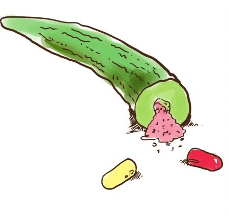 黃瓜派:黃瓜挖洞,裝藥吞下。