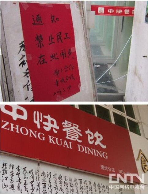 食堂承認張貼禁令 稱民工有專屬食堂