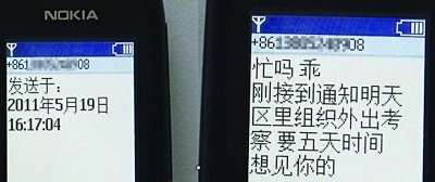 帖子附上了8張手機短信內容圖片,第一張短信圖片就暴露了當事一方男子的身份,“挺會疼人啊,潘局!倍绦艜r間為10月20日10:53:31,收件人號碼為138××××××08。隨后的幾個短信,都是“潘局”噓寒問暖的內容,“忙嗎,乖?剛接到通知,明天區里組織外出考察,要五天時間。想見你的”,“是的,親親你”。細心的網友統計說,根據短信內容,去年9月份,“潘局”就和女子有了聯系,而“打情罵俏”短信條數也很驚人,發出的信息為955條,收到的信息為812條。